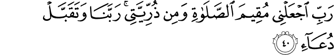"Wahai Tuhanku! Jadikanlah daku orang yang mendirikan sembahyang dan demikianlah juga zuriat keturunanku. Wahai Tuhan kami, perkenankanlah doa permohonanku.