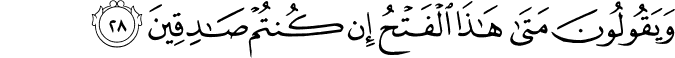 Dan mereka bertanya: "Bilakah datangnya hari pembukaan bicara yang dikatakan itu jika betul kamu orang-orang yang benar?"