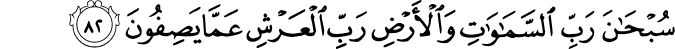 Maha Suci Allah Tuhan yang menciptakan langit dan bumi, - tuhan yang mempunyai Arasy (yang melambangkan kebesarannya), - (Maha Sucilah Ia) dari apa yang mereka katakan itu.