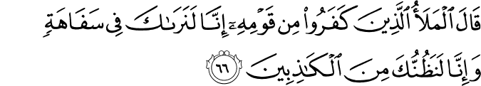 Ketua-ketua yang kafir dari kaumnya berkata: "Sesungguhnya kami (wahai Hud) nampakmu berada dalam kebodohan, dan sesungguhnya kami fikir engkau adalah dari orang-orang yang berdusta".